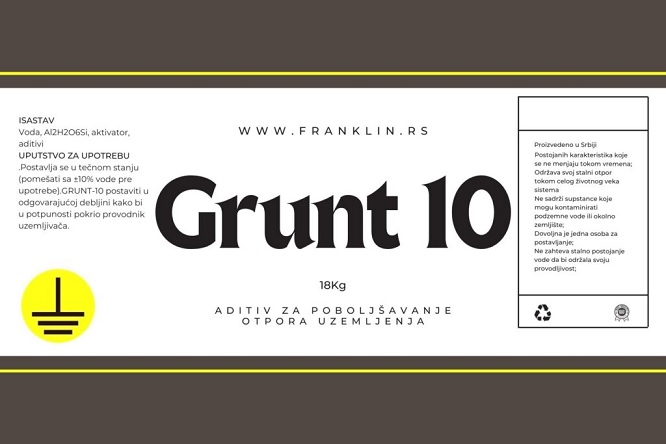 GRUNT-10 aditiv za poboljšanje uzemljenja je sofisticirani i visokotehnološki proizvod osmišljen s ciljem unapređenja električnog uzemljenja u različitim industrijskim i komercijalnim postrojenjima. Uzemljenje je ključni aspekt električnih sistema jer osigurava sigurno ispuštanje električnih struja u zemlju, štiteći tako osoblje, opremu i okolinu od opasnih naponskih razlika i električnih udara. Aditiv za poboljšanje uzemljenja koristi inovativne sastojke i tehnologije kako bi povećao električnu provodljivost tla i stvorio niskootporni put za struje koje bi mogle nastati usled grmljavinskih pražnjenja, kratkih spojeva ili drugih električnih problema. Kada se primeni u uzemljenju, ovaj aditiv pomaže u smanjenju otpora u tlu, čime se osigurava brže i efikasnije pražnjenje električnih struja.Prednosti korišćenja aditiva za poboljšanje uzemljenja su mnogobrojne. Osim što smanjuje rizik od požara, eksplozija i ozljeda povezanih s električnim strujama, ovaj aditiv takođe pomaže u poboljšanju performansi električnih sistema. Smanjenje otpora uzemljenja takođe može doprineti boljoj stabilnosti napona i smanjenju smetnji u električnoj opremi.Grunt-10 aditiv za poboljšanje uzemljenja je jednostavan za primenu. Obično se dodaje u tlo oko uzemljenja i lako se meša sa zemljom kako bi se postigla homogena smesa. Ovaj aditiv je takođe otporan na različite vremenske uslove i ne izaziva negativne uticaje na okolinu.Kako je bezbednost ključna komponenta svakog električnog sistema, aditiv za poboljšanje uzemljenja postaje nezamenjiv proizvod za industrijske postrojenja, energetske centrale, komunikacione tornjeve, solarne farme i mnoge druge lokacije gde je pravilno uzemljenje od vitalnog značaja. Njegova primena obezbeđuje efikasniju i bezbedniju radnu okolinu za zaposlene, čime se smanjuju i potencijalni troškovi održavanja električnih sistema i utroška materijala prilikom izrade uzemljenja. GRUNT-10: Postojanih karakteristika koje se ne menjaju tokom vremena. Ne sadrži supstance koje mogu kontaminirati podzemne vode ili okolno zemljište. Lak za upotrebu – isporučuje se u kantama od 18L. Dovoljna je jedna osoba za postavljanje. Postavlja u tečnom stanju (pomešati sa 10% vode pre upotrebe).