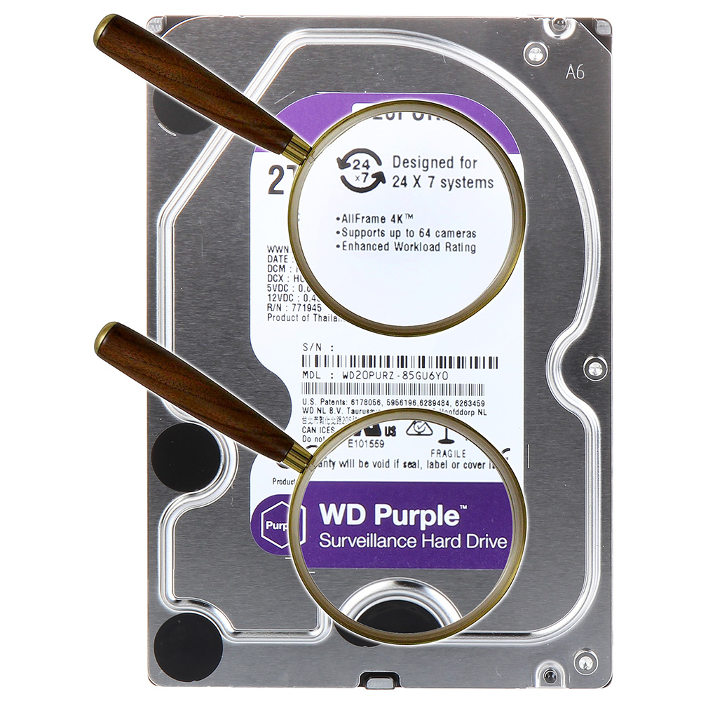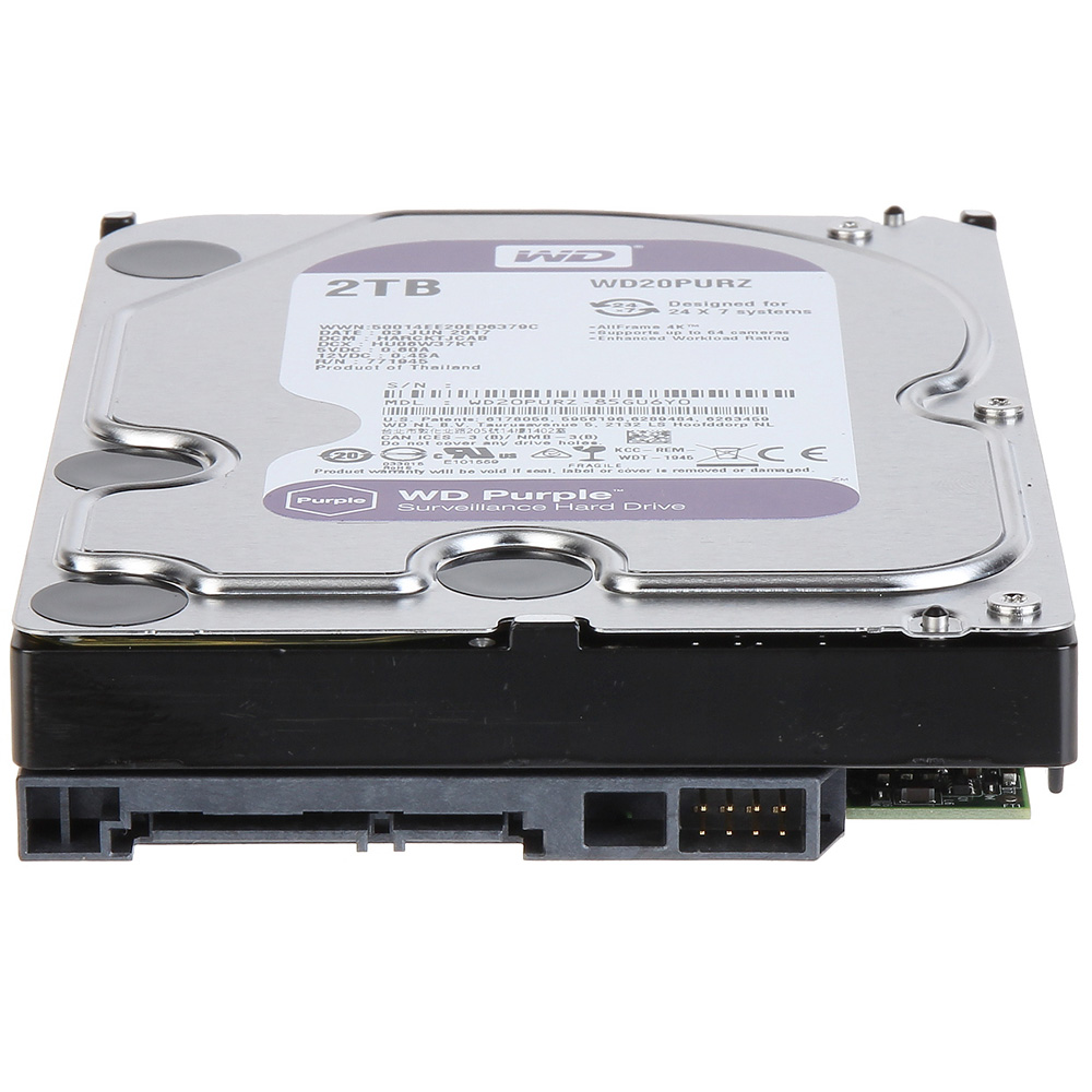 WD Purple diskovi za video nadzor su napravljeni za 24/7 non-stop nadzor u sigurnosnim sistemima visoke definicije koji koriste do osam hard diskova i do 32 kamere. Ekskluzivna AllFrame tehnologija radi sa ATA strimovanjem da smanji greške pikselizacije i prekide video snimka koji se pojavljuju kada se desktop klasa hard diskova greškom koristi kao skladište podataka u sistemima nadzora. Model WD20PURX. Kapacitet 2TB. Povezivanje SATA3. Tip Interni. Broj obrtaja u minuti 7200. Format 3.5“. Bafer 64MB.