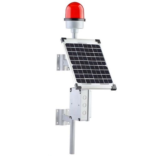 Signalna LED svetiljka, treptuće crveno svetlo, Niski intenzitet 32cd, Napon Solar Energy 12V 7.0AH/20HR, metalno kućište, Može se fiksirati na ravnu podlogu ili stub, IP65, Standard ICAO(annex 14) tip B. Isporučuje se sa kompletnom dokumentacijom (mišeljenje Direktorata za civilno vazduhoplovstvo) i fabričkim garancijama.