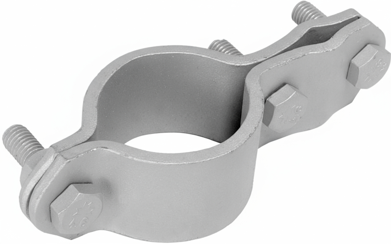 Obujmica za noseći stub 6/4col, 48mm. Koristi se za prihvat okruglih gromobranskih provodnika Ø8mm/ Ø10mm. Materijal: Toplocinkovani čelik.