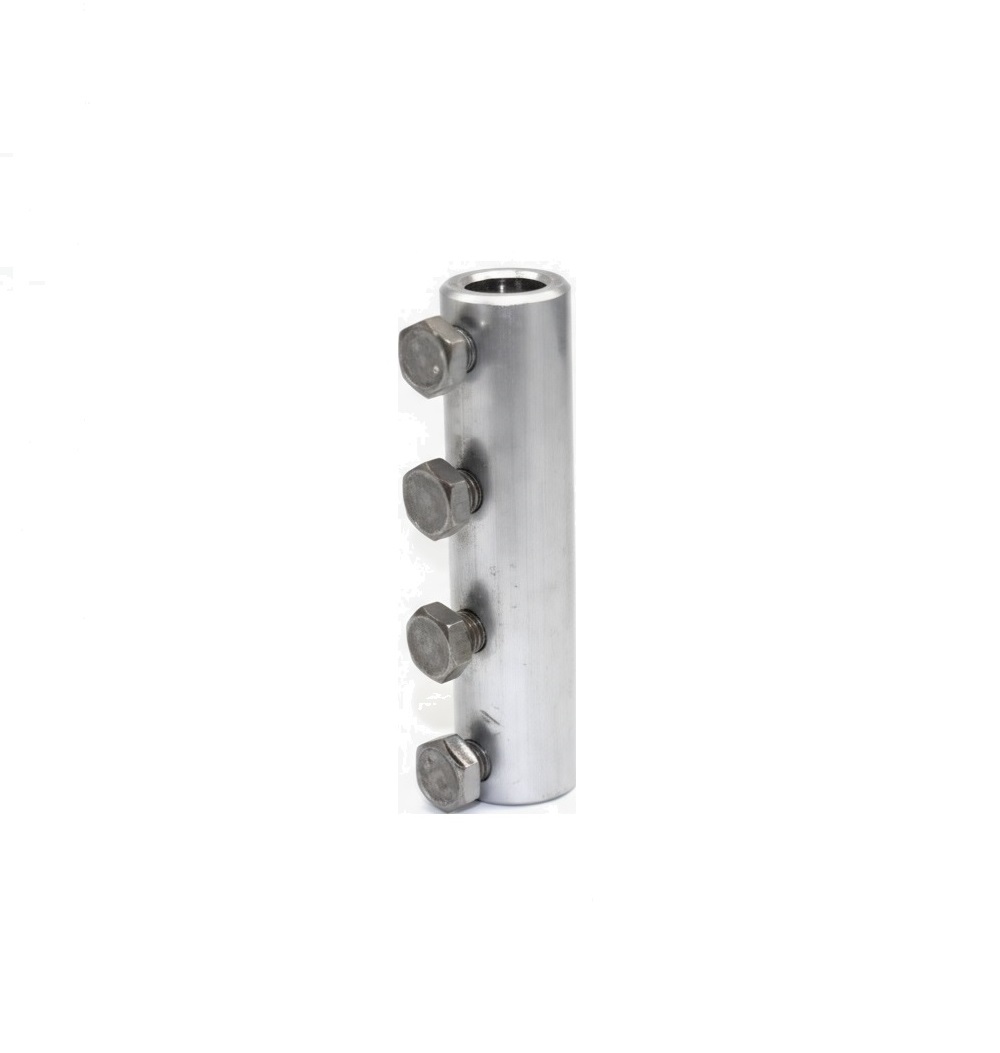 Spojnica za nastavljanje okruglih gromobranskih provodnika (žica). Koristi se za provodnike Ø8mm/ Ø10mm. Materijal: Aluminijum. Dimenzije: 75mm