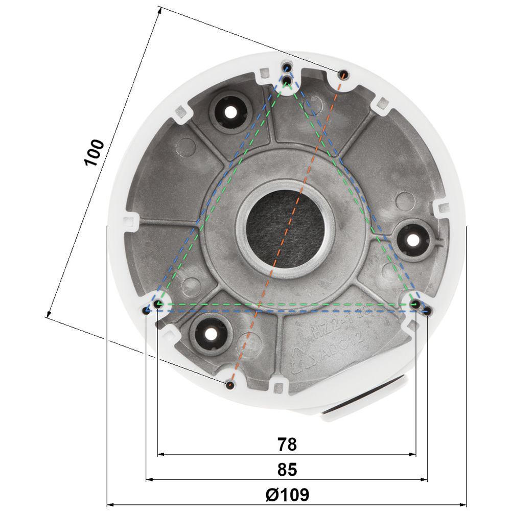 Nosač za kamere serije IPC23XX/222X, IPC74X i IPC252/26X. Dimenzije:Φ125mm*125mm*55mm. Težina: 0.75kg. Materijal: Aluminijum.