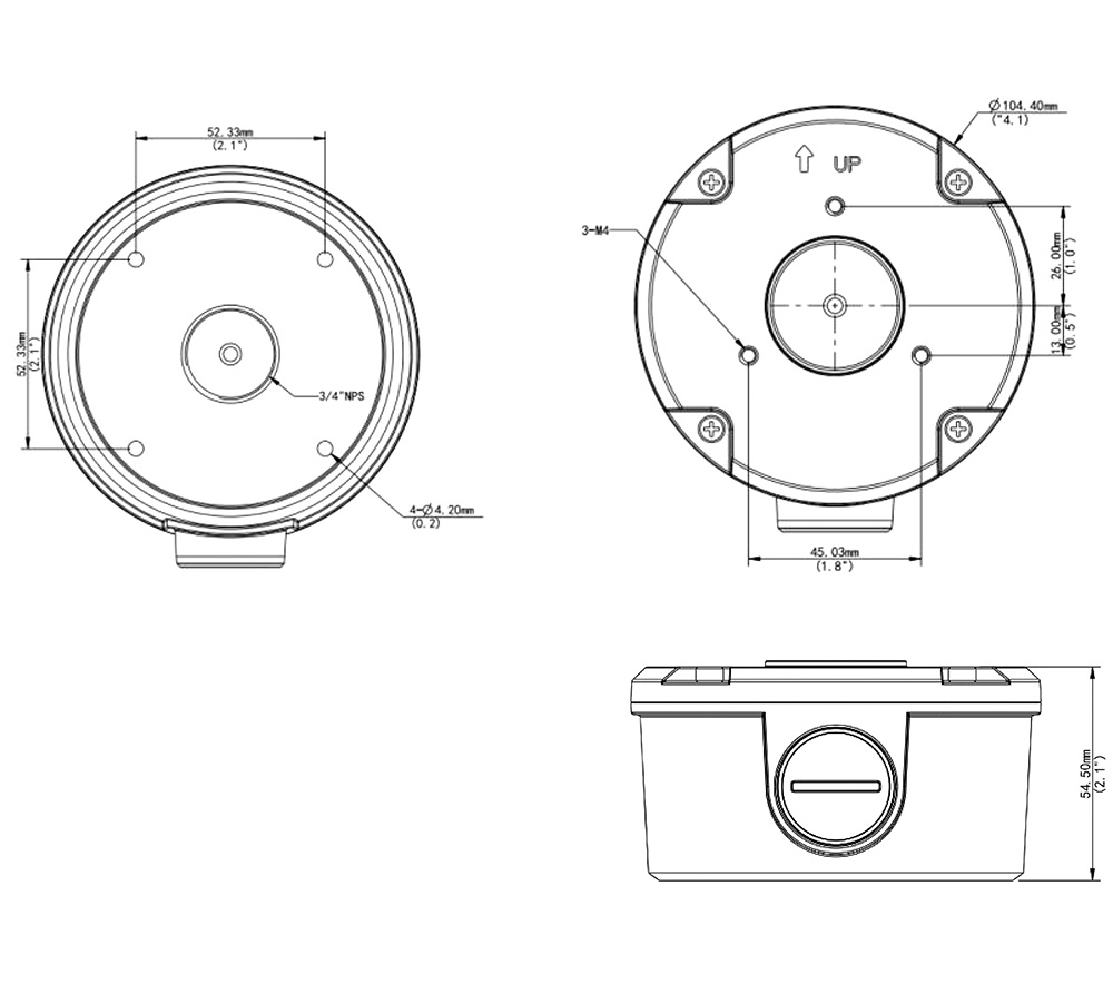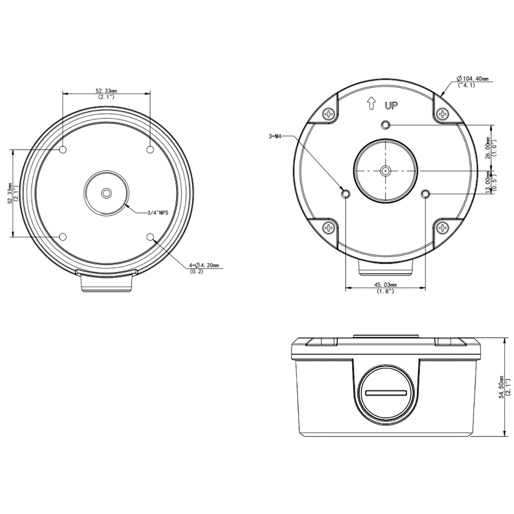 Nosač za Dome kamere serije IPC21XX. Dimenzije:Φ104.4mm*54.5mm. Težina: 0.36kg. Materijal: Aluminijum.