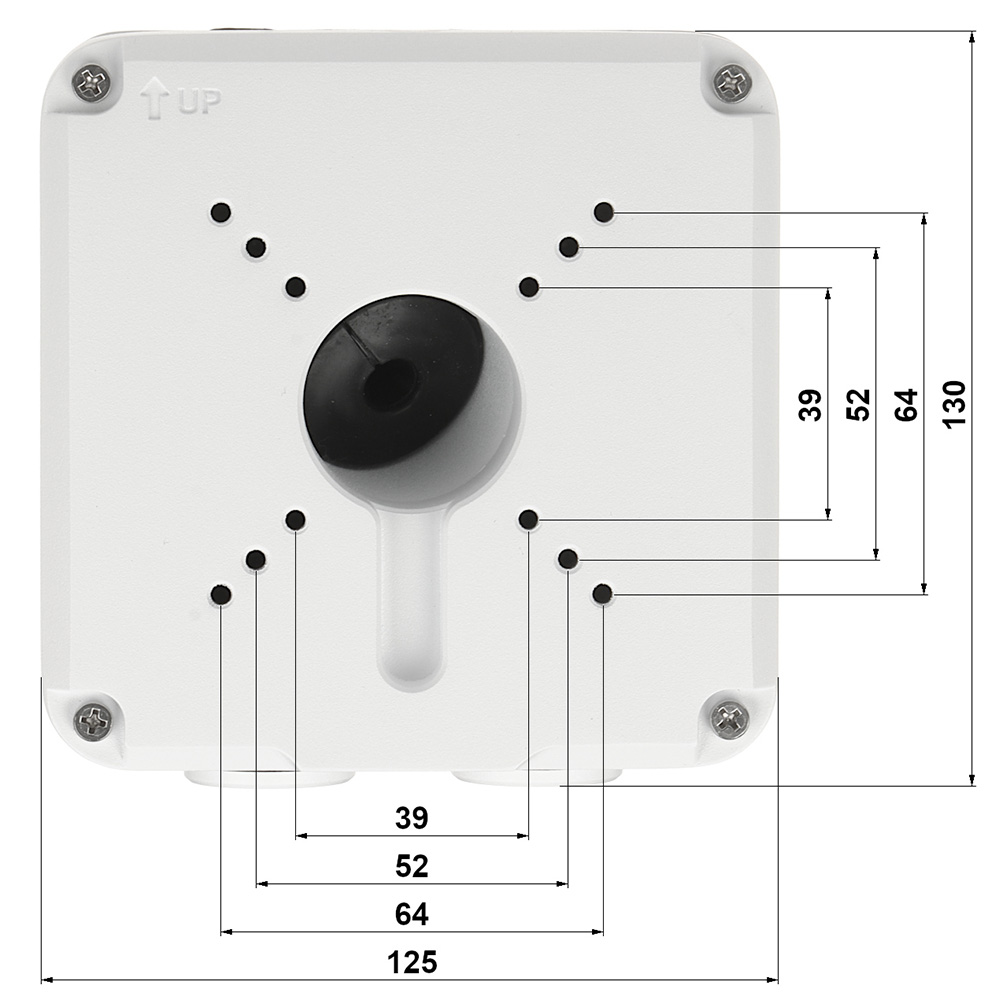 Nosač za kamere serije IPC23XX/222X, IPC74X i IPC252/26X. Dimenzije:Φ125mm*125mm*55mm. Težina: 0.75kg. Materijal: Aluminijum.