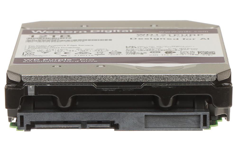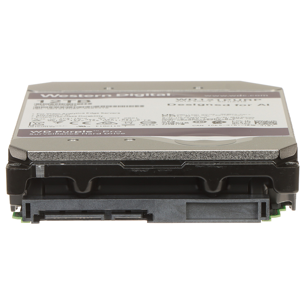 Hard-disk kapaciteta 12TB. WD Purple Pro serija. Projektovan za upotrebu u DVR-ovima i NVR-ovima. Za 24/7 aplikacije. MTBF 2.500.000 sati. 3.5″, 12TB, 256MB cache, SATA 6Gb/s. CMR tehnologija. AllFrame AI Tehnologija. Radna temperatura 0°C~65°C. Dimenzije V: 26.1 mm x D: 147mm x Š:101.6mm. Prosečna potrošnja do 6W.